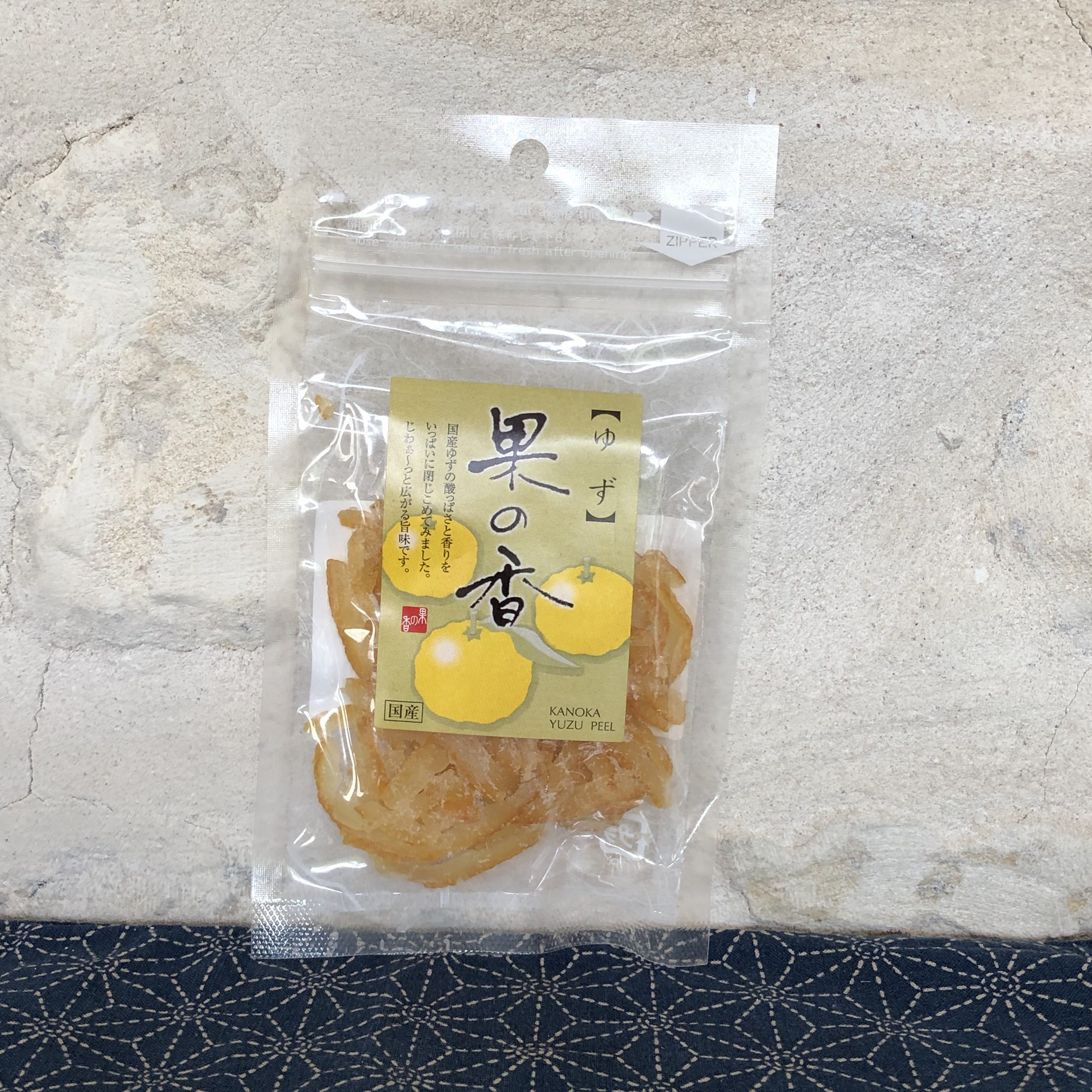 Petites écorces sèches et confites. Le yuzu est un agrume japonais de couleur jaune et d’une centaine de grammes.
